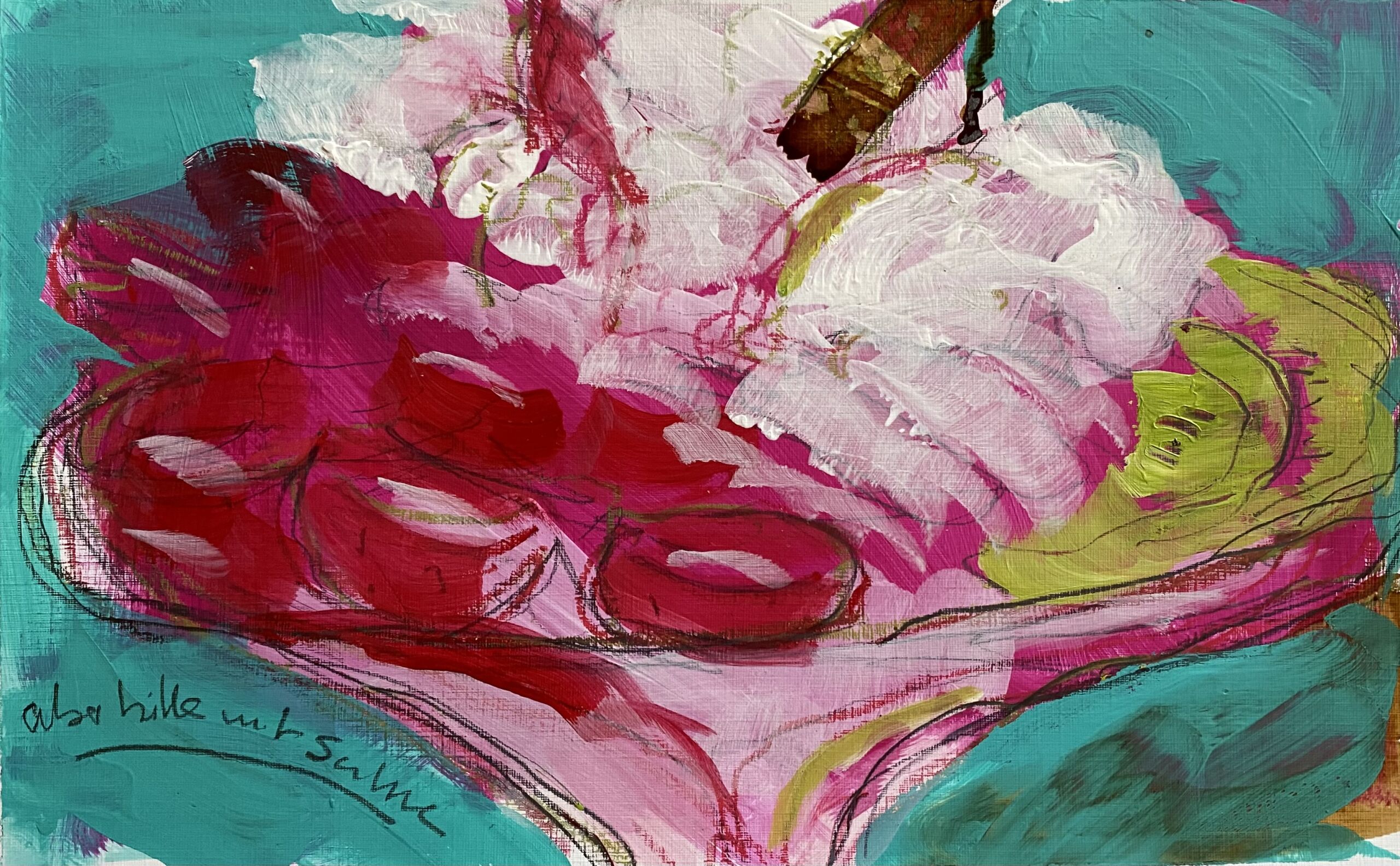 View Larger Image ClementineTim Pflug2025-06-20T12:12:55+02:00 Projektbeschreibung all you can eat, 2023 Projektdetails Größe: 50cm x 40cm Kategorie: Stillleben Technik & Materialien: Acryl/Collage Dazu passende Arbeiten Pomegranate II Gallery Pomegranate II Pomegranate Gallery Pomegranate Put on your blue suede shoes Gallery Put on your blue suede shoes Aber bitte mit Sahne Gallery Aber bitte mit Sahne